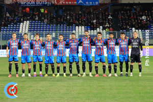 Catania (3-4-1-2): 1 Bethers; 27 Castellini (K), 15 Di Gennaro (VK), 33 Anastasio; 20 Carpani (26°st 8 Sturaro), 14 Verna, 10 Jiménez, 19 Raimo (35°st 16 Quaini); 21 Stoppa (27°st 44 Guglielmotti); 9 Inglese, 11 D’Andrea (36°st 32 Montalto). A disposizione: 31 Adamonis; 36 Allegra, 68 Ierardi, 40 Sechi; 6 De Rose, 37 Forti; 17 Luperini; 38 Corallo. Allenatore: Toscano.